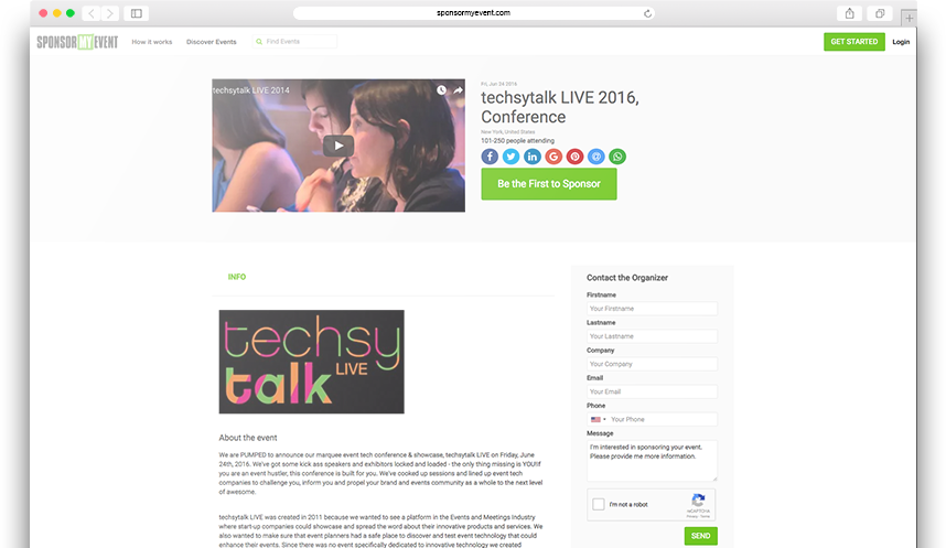 When you’re ready to begin the negotiation process, you can connect with an event’s organizer directly. Learn more about the event, inquire about any questions you might have and negotiate the terms of your sponsorship deal.